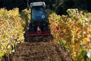 Le travail à la vigne passe notamment par des traitements réfléchis et raisonnés en fonction des conditions climatiques et du travail mécaniques des sols.